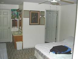Schlafzimmer, komplett eringerichtete Küche, Wohnzimmer, sonniges Esszimmer, Bad mit Dusche, Waschmaschine/Trockner vorhanden. Das Apartment liegt ebenerdig auf 8 Morgen bergigem Waldland mit Blick auf einen Fluss.